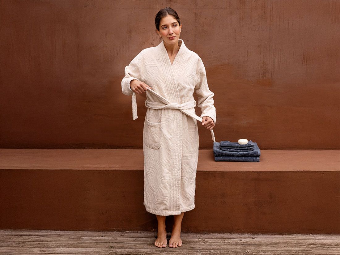 En härligt tjock morgonrock för vintern, supermjuk och snygg färg. Jag var lite rädd för att ärmarna skulle vara för långa med tanke på bilderna och kommentarerna, men på mig sitter den perfekt! Jag är alltså jättenöjd. Storleken är också rätt, den är stor nog. Stadigt tyg, men det gillar jag :).